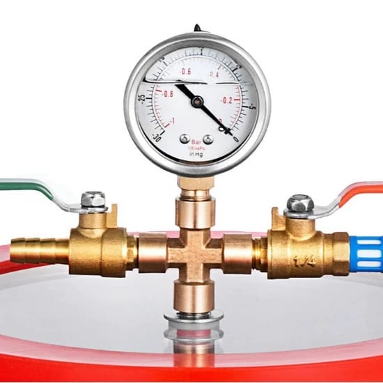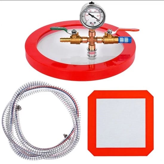 Pompa de vid – cu rezervor de 11,5 litri – 4,5 CFM este un dispozitiv potrivit pentru impregnarea rășinii epoxidice, a altor rășini sintetice, a cauciucului siliconic turnabil și a stabilizatorilor. Pompa de 1/3 CP este capabilă să extragă aproximativ 127 de litri de aer pe minut, iar dimensiunea internă a rezervorului de 11,5 litri este de 225 mm diametru × 270 mm înălțime, ceea ce este potrivit pentru aspirarea proiectelor mici și mijlocii. Pompa de vid poate fi utilizat pentru a îndepărta microbulele introduse în timpul amestecării, rezultând o turnare mai curată și mai uniformă.
